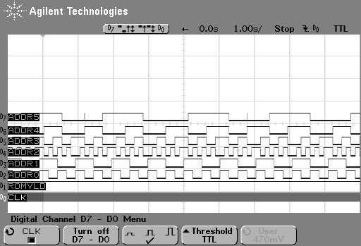 When I got that working, I connected the actual peripheral to the outputs, and put the test code back into the ROM