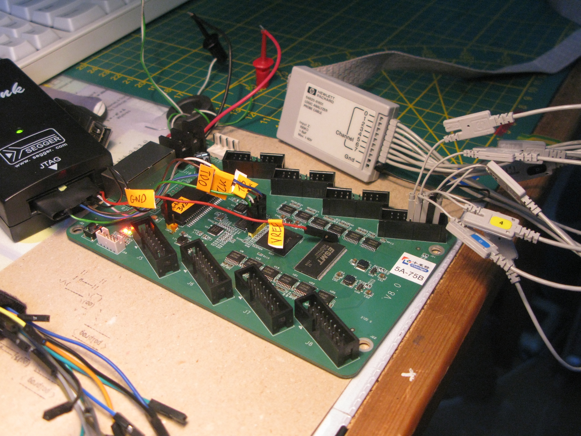 While debugging this setup I made the 8051 output the ROM bytes on one of the HUB75 headers. Here is the final result when I got it all working